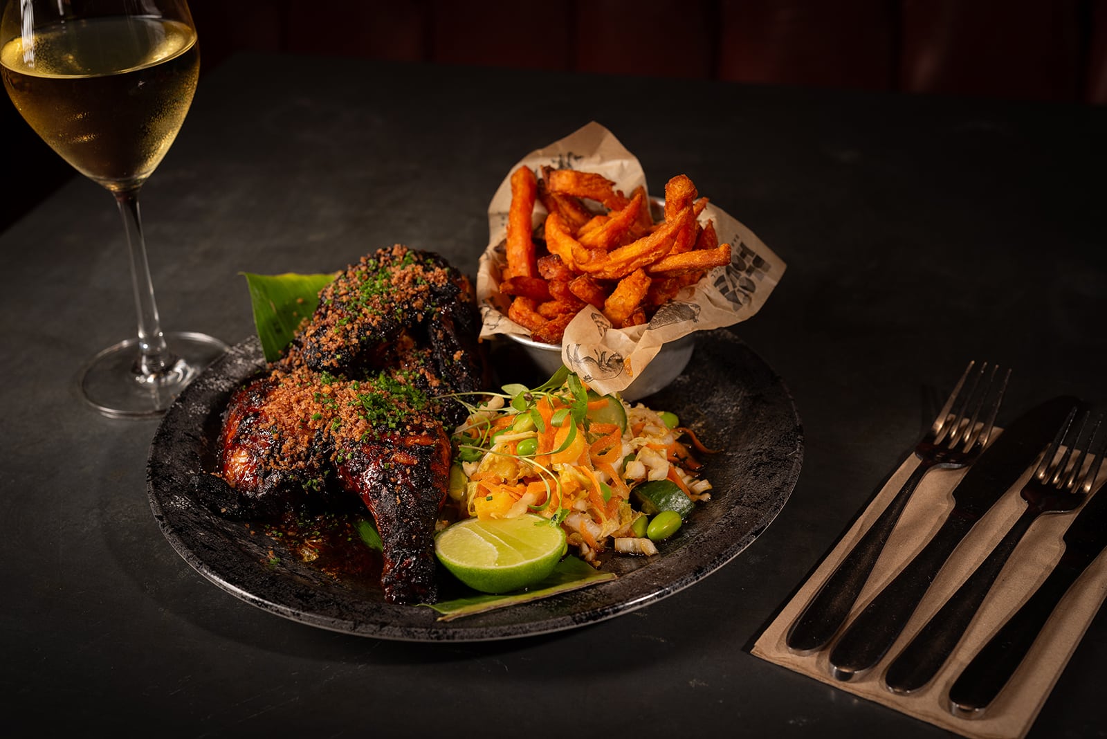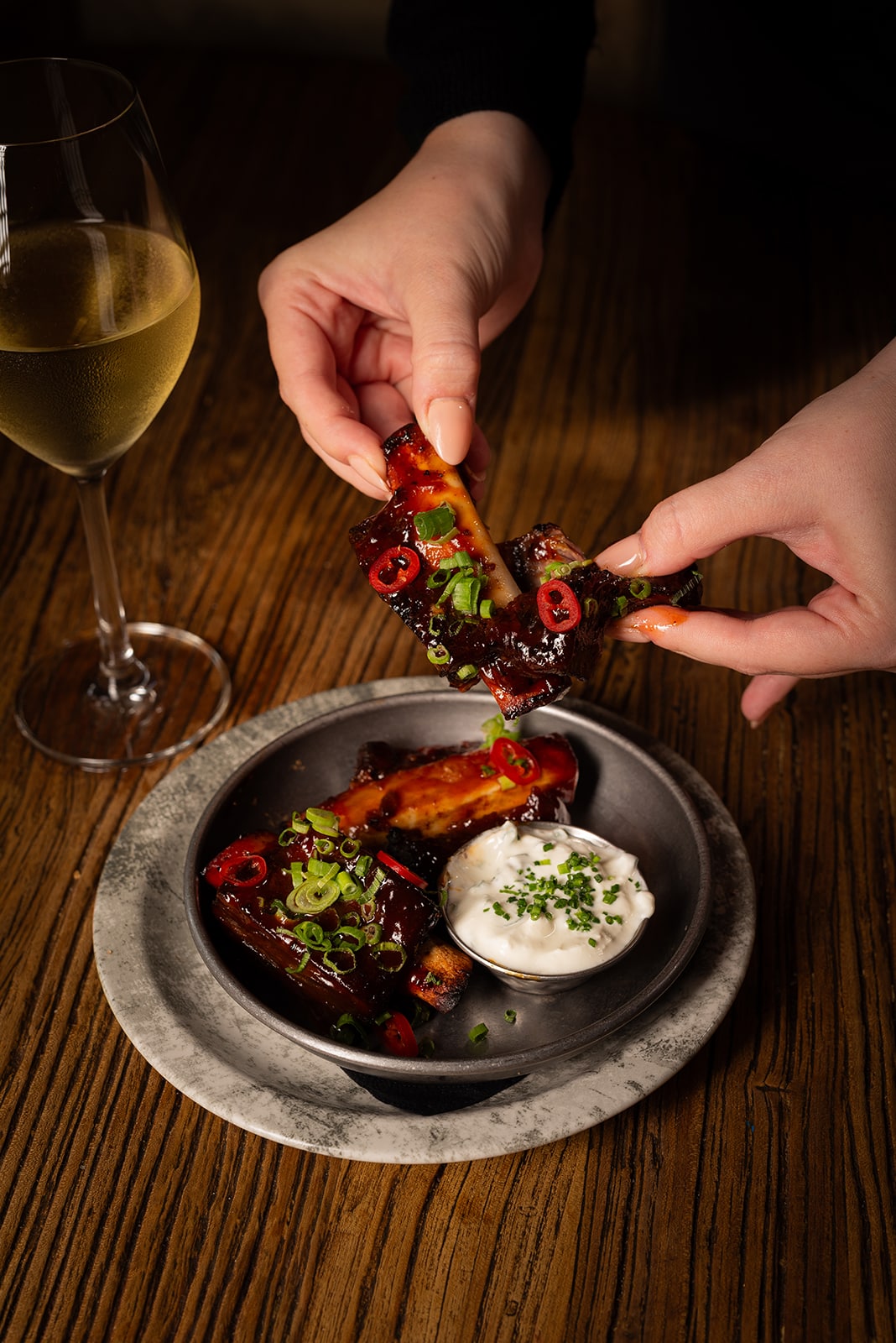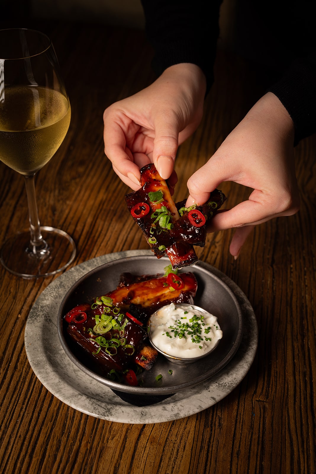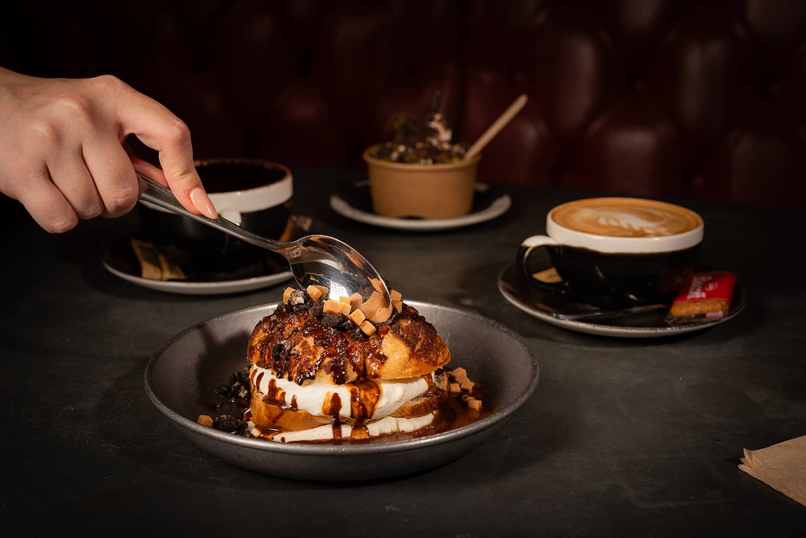 We used a combination of deep shadows and. directional lighting for the plated dishes and a few additional highlights to bring out the shine of sauces and textures. For social media content, you want a bit of sparkle — something that catches the viewer’s attention mid-scroll.